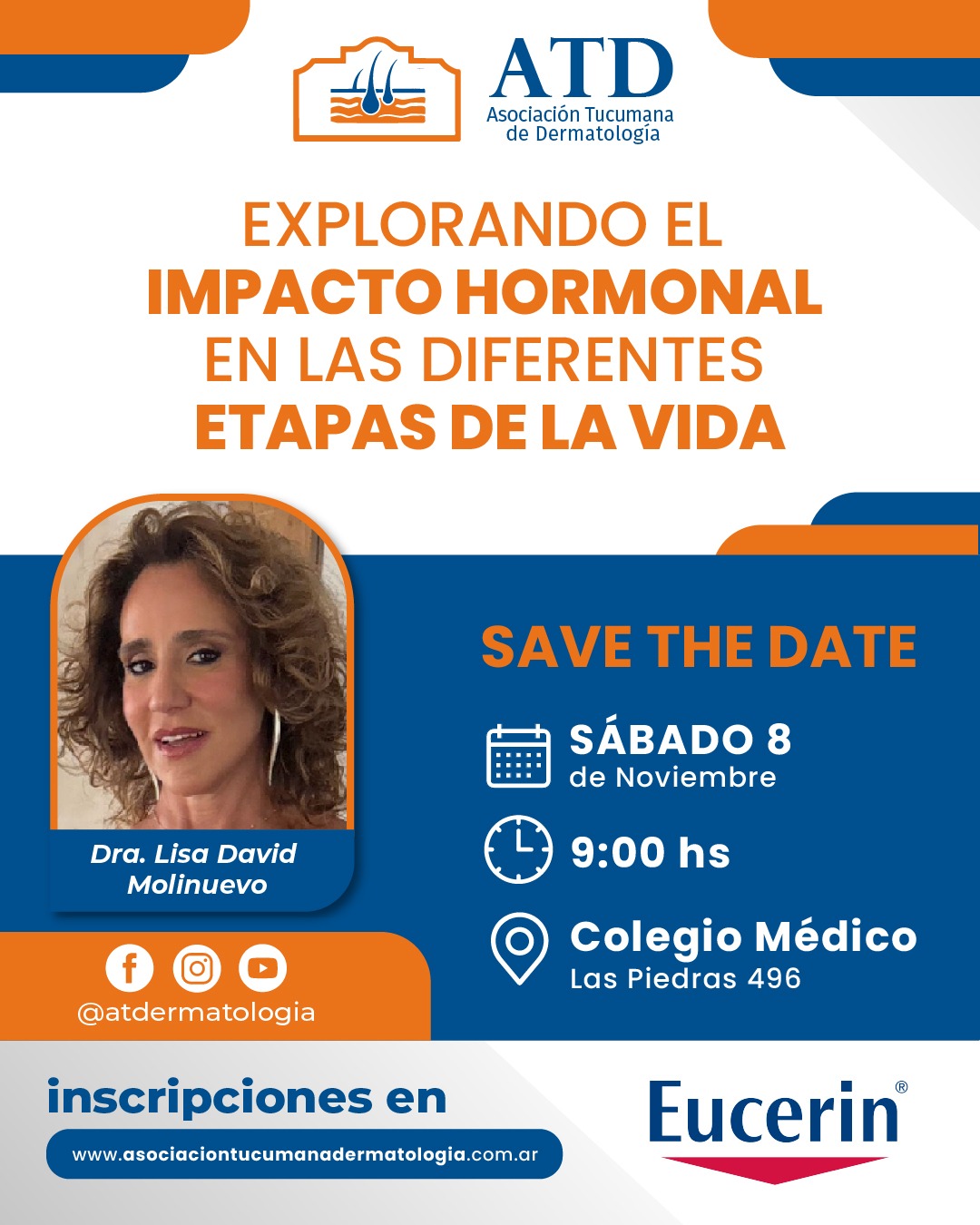 La Asociación Tucumana de Dermatología (ATD) invita a participar de una nueva jornada científica titulada “Explorando el impacto hormonal en las diferentes etapas de la vida”, a cargo de la Dra. Lisa David Molinuevo.
