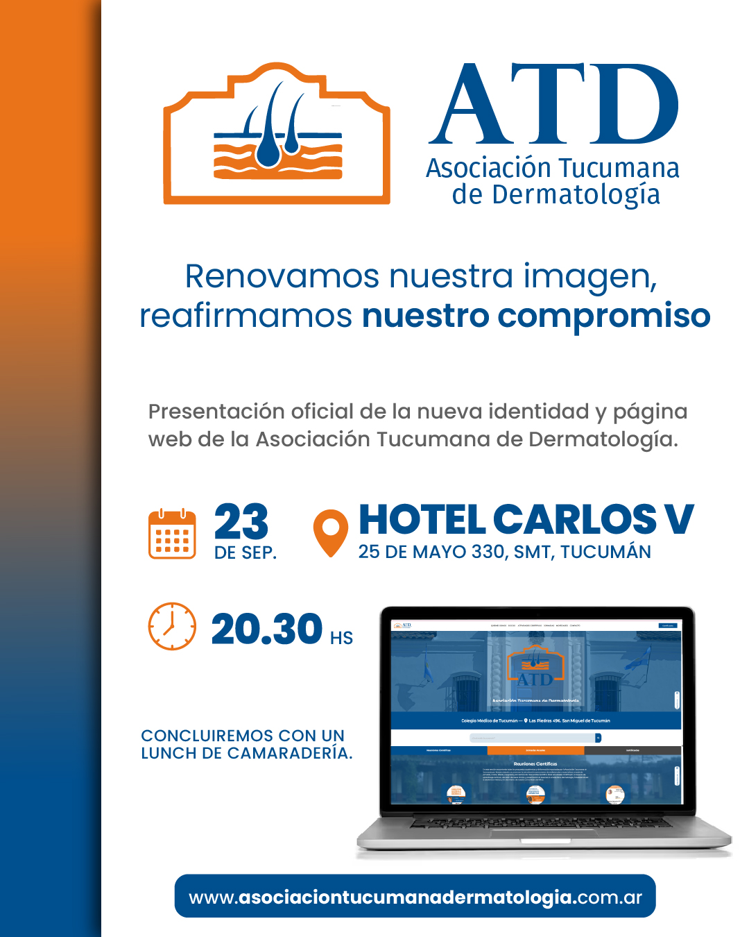 La Asociación Tucumana de Dermatología presentó oficialmente su nueva identidad visual y página web en un evento realizado en el Hotel Carlos V. Un paso más en nuestro compromiso con la excelencia profesional.
